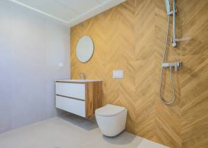 The interior of the villa is carefully designed to offer comfort and functionality. It consists of three bedrooms, all equipped with built-in wardrobes that optimize storage space. The property's two bathrooms are designed to offer comfort and style. The porcelain tile flooring adds a touch of elegance and is easy to maintain, ideal for modern living.