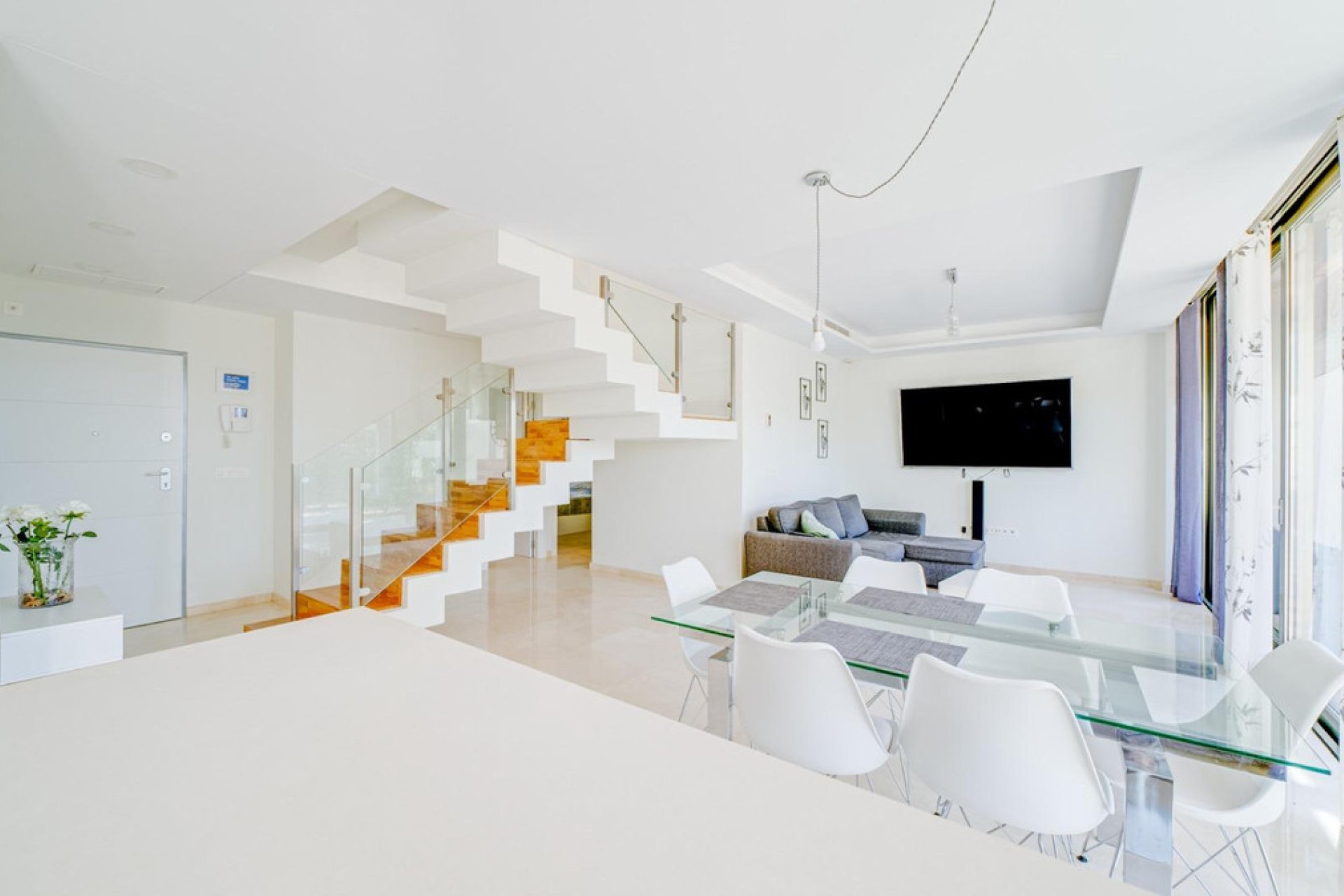 Adosado en primera línea de playa en VillajoyosaEste encantador adosado se encuentra a tan solo 50 metros de las aguas cristalinas de la mejor playa de Villajoyosa, "Paradiso". Con una superficie total de 156,02 metros cuadrados, se distribuye en dos plantas y jardín.En la planta baja, encontrará un amplio y luminoso salón-comedor, una cocina totalmente equipada con isla, dos dormitorios y un baño. Además, hay una terraza de 30 metros cuadrados, perfecta para disfrutar de comidas y reuniones al aire libre.Arriba, hay otro dormitorio con grandes ventanales y un baño en suite. Además, una terraza de 46 metros cuadrados ofrece impresionantes vistas al mar, ideal para disfrutar del amanecer y el atardecer.Esta casa adosada también viene con un garaje y un trastero para su comodidad. La urbanización dispone de acceso privado a la playa y varias piscinas, zonas verdes y seguridad 24 horas para la tranquilidad de los residentes. No pierdas esta oportunidad de poseer un pedazo de paraíso en Villajoyosa.