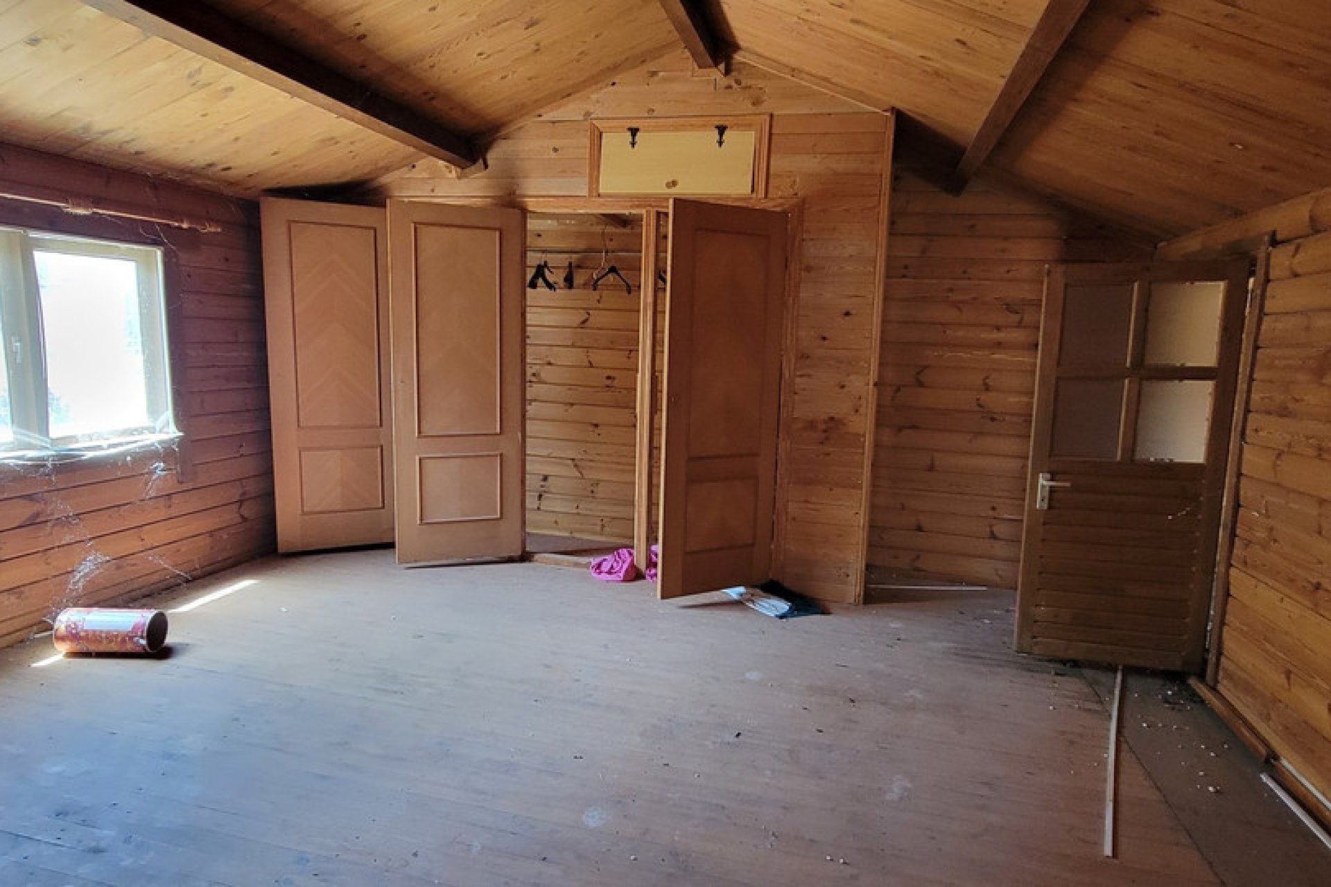 Gated off at the front you have the wooden chalet to your left being 111m2 and the finca 113m2 to your right. Both properties would need TLC. They have not been lived in for several years and are showing visible signs of wear and tear which will need to be pinned.